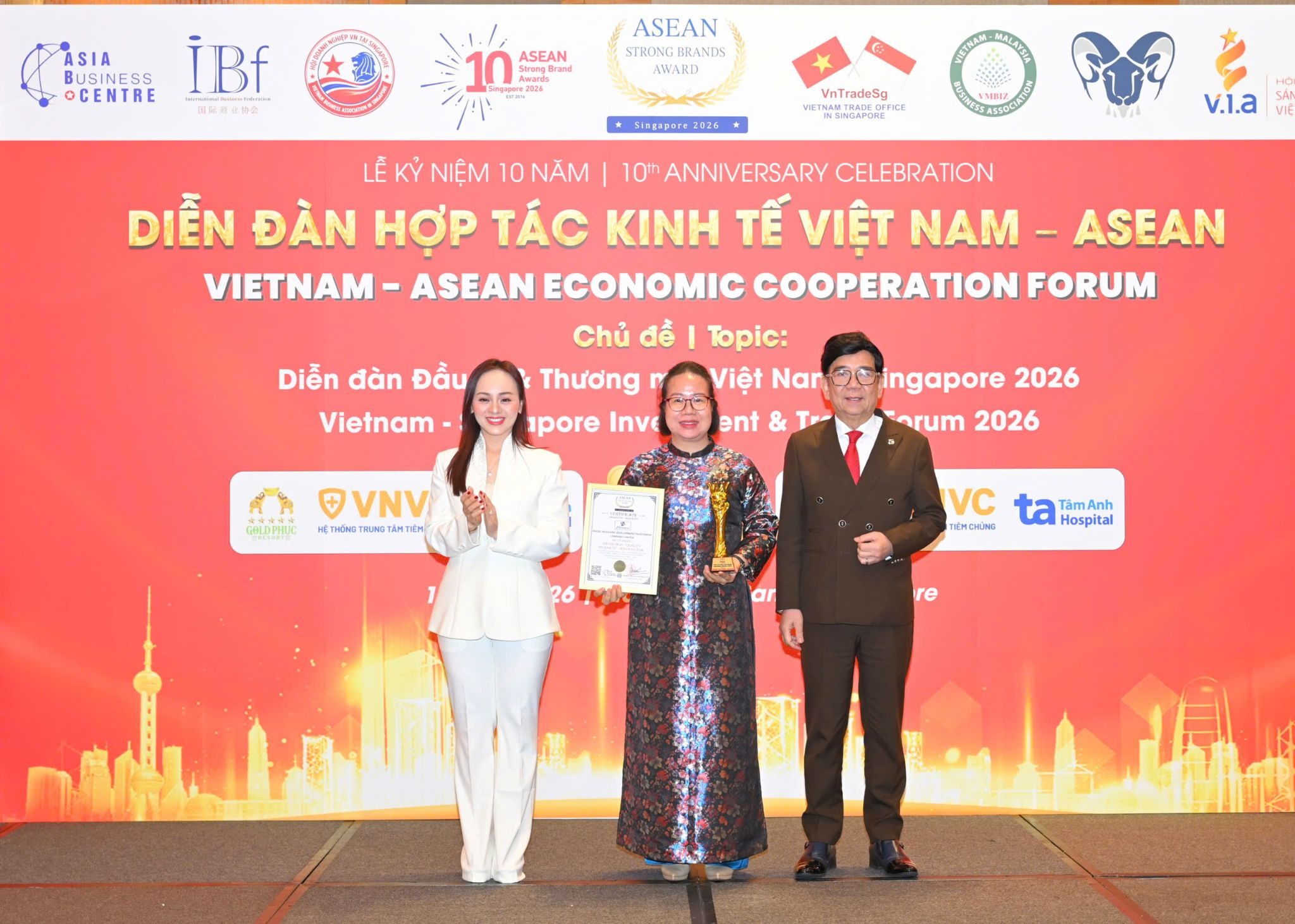Ngày 18/04/2026, tại Singapore, trong khuôn khổ Diễn đàn Hợp tác Kinh tế Việt Nam – ASEAN và Lễ công bố Giải thưởng Thương hiệu Mạnh ASEAN 2026 (lần thứ 10), Công ty TNHH Đầu tư Phát triển Phước An Khang đã được trao danh hiệu Sản phẩm – Dịch vụ Chất lượng cao ASEAN 2026 (ASEAN High – Quality Products – Services 2026).